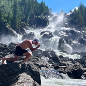 - самый высокий каскадный водопад на Алтае Учар (перепад воды 160 метров) — трекинг с элементами «ой, мамочки», «нам нужна страховочная веревка» и «я думал купаться в водопаде меня не заставить»;